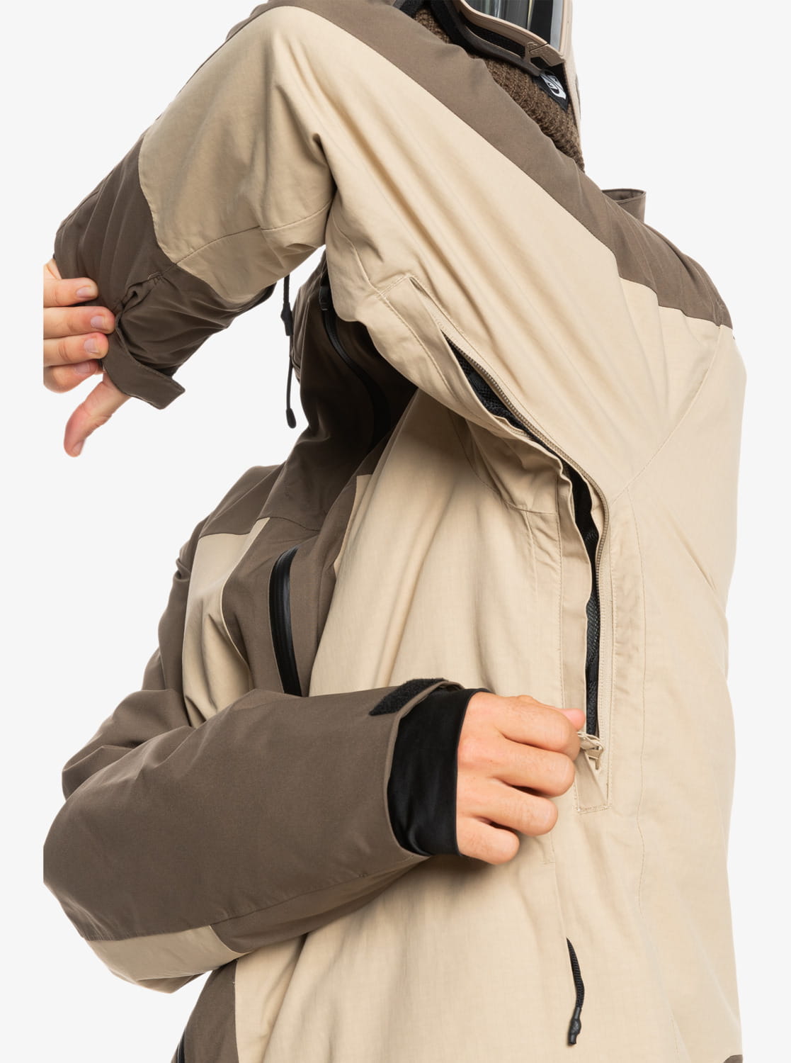 - Mankiety: Zintegrowane elastyczne wewnętrzne mankiety z wejście, na kciuk,